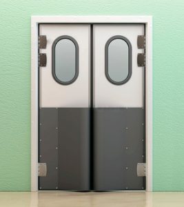 Противопожарные полуторные двери имеют следующие конструктивные особенности: