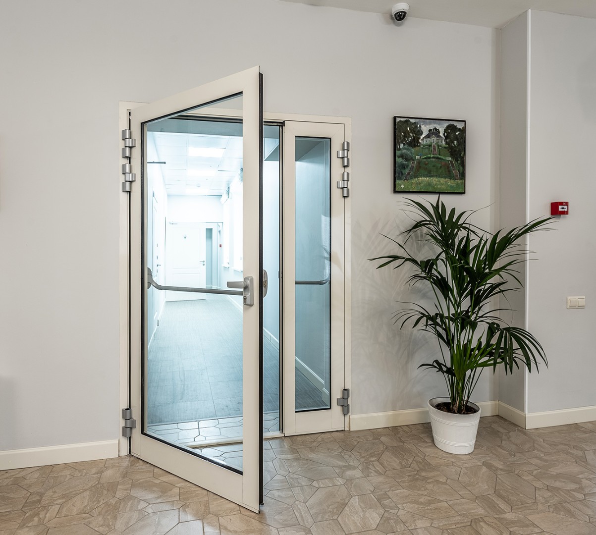 Белые противопожарные окна изготавливают из закаленных стеклопакетов и огнеупорного алюминиевого каркаса, они служат для защиты от распространения огня и веществ, выделяющихся при пожаре, внутри помещения, здания.